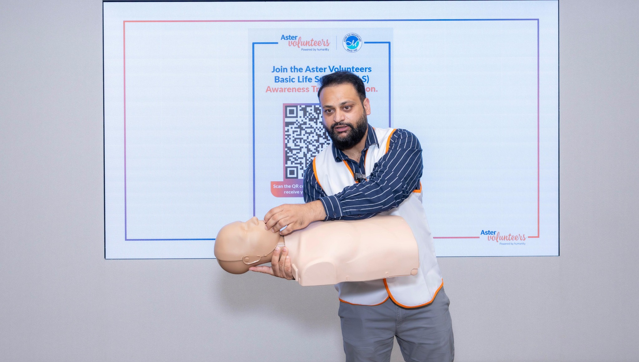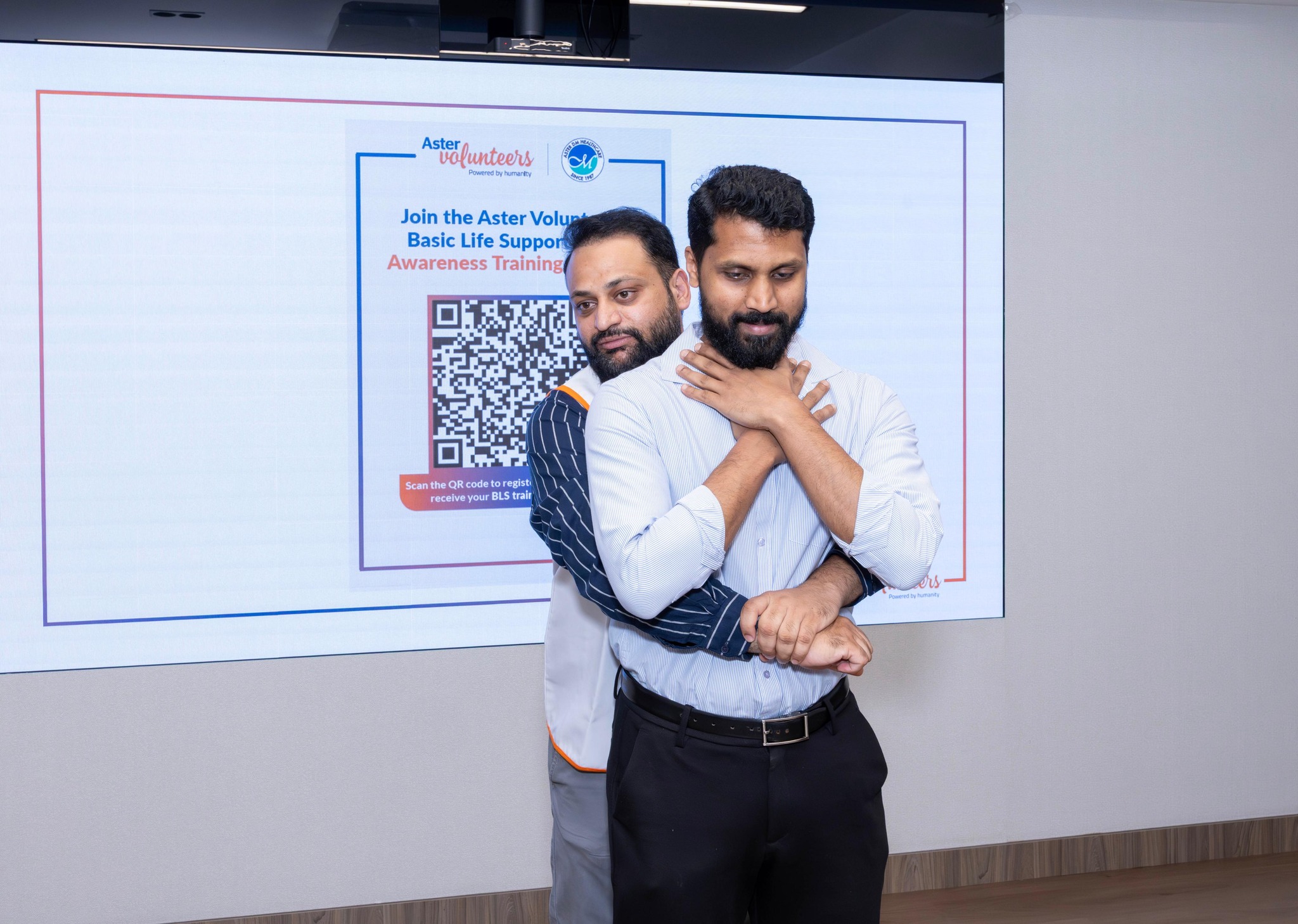 To equip individuals with essential life-saving skills, Aster Volunteers UAE conducted a Basic Life Support (BLS) Awareness Training Session for employees at Aster DM Healthcare – Corporate Headquarters, Business Bay, Dubai. Over 60 staff members from departments including Finance, MyAster, HR, Quality, Administration, Insurance, Legal, and IT participated in the session. The training included a video-based online module, followed by a Q&A assessment and hands-on practical sessions. Participants who successfully completed all stages were awarded online certificates, equipping them with the confidence to respond effectively in real-life emergencies. Together, let’s build a community that’s informed, prepared, and ready to save lives—because every second counts.